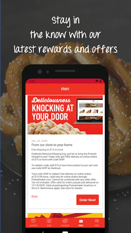 Get a $3 reward once you sign up and make your first purchase at Pretzelmaker. Additional tasty rewards during special holidays, birthdays, anniversaries, and much more! Available at participating locations, the Pretzelmaker app allows you to track your purchases as you spend, earning points towards a $5 rewards and so much more!
