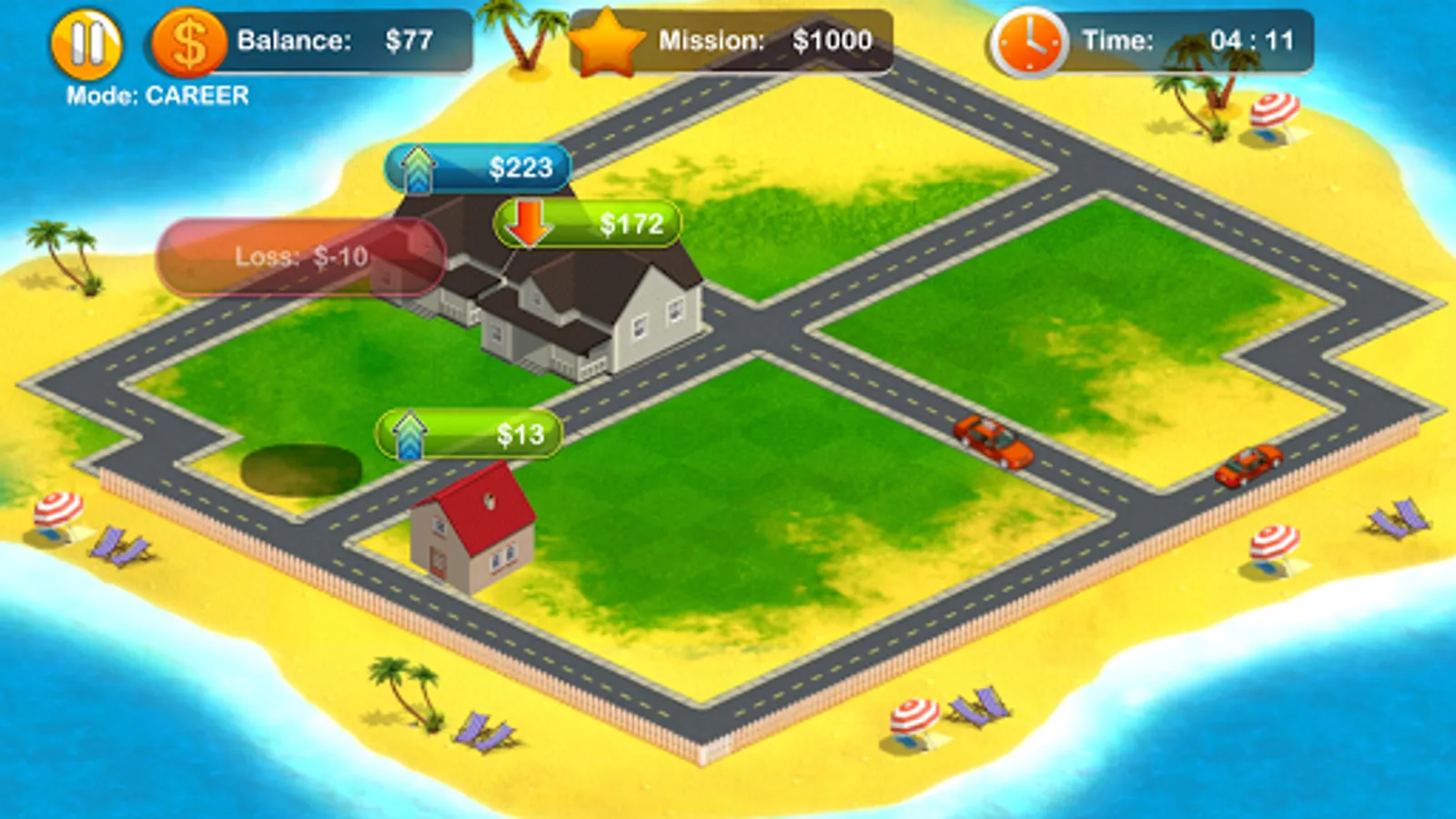 Real Estate Tycoon is a game about buying and selling real estate for profit. Buy houses when their prices are at rock bottom, then sell them at their peak before the price crashes. Get rich in record time through virtual real estate speculations :)
