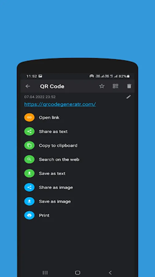 7. Easily share content from within apps as QR codes (i.e. generate a QR code from within Safari to share a website URL).
