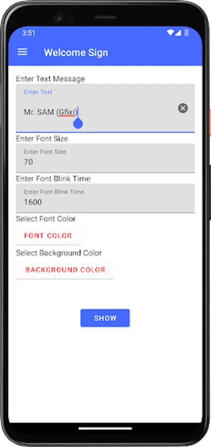 App allows easily to change welcome sign (Sign Board) text, color, size, create blinking text sign.
