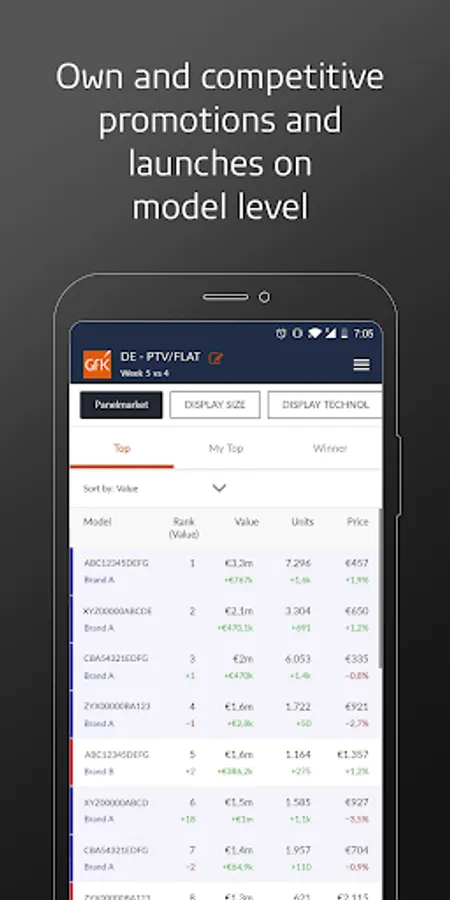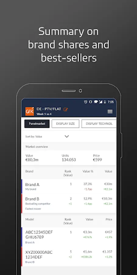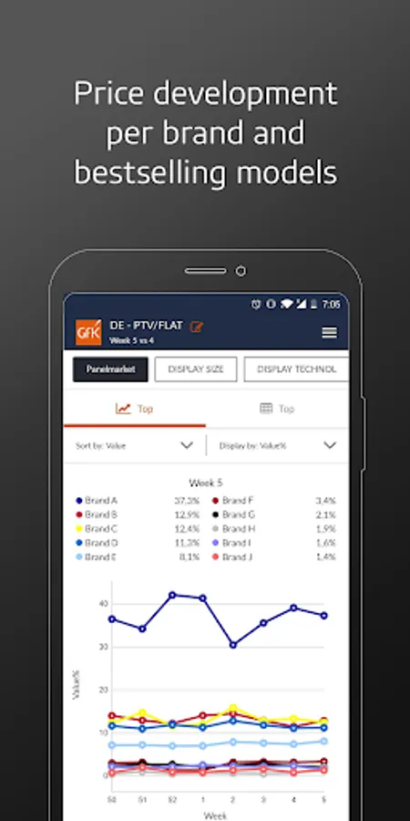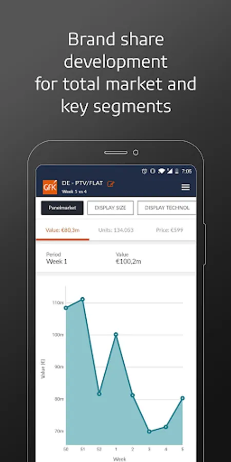 Designed for local sales managers, the GfK Performance Pulse provides easy access to the weekly Point of Sales insights you need to succeed: a reliable foundation for tactical decision making – wherever you are. At your fingertips you find an at-a-glance summary of market share, sell-out performance, closest competitor, strongest mover and best-selling models. You can swipe through to key market developments and get into the granular details for a deep dive into best-selling models, brands, prices and channels.