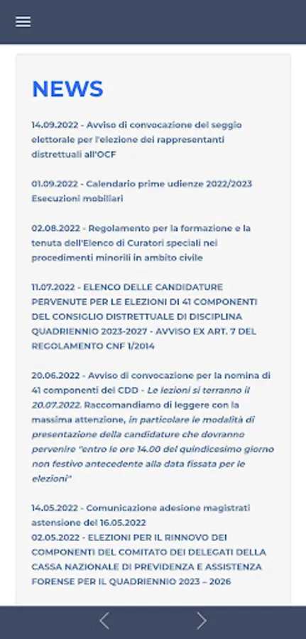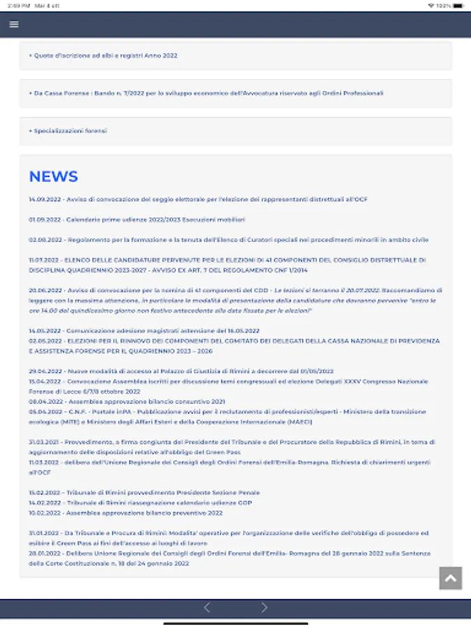 The Rimini Bar Association has developed its own application with the aim of being even closer to its Members, informing them in real time about the most important news regarding the Forum and providing them with an agile and intuitive interface tool that allows quick consultation of the main legal texts in force, certainly useful for carrying out the forensic activity.