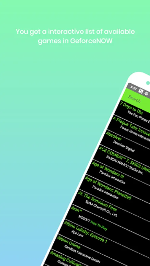 This is app provides you the latest current list of all games available on Nvidia Geforce Now platform.