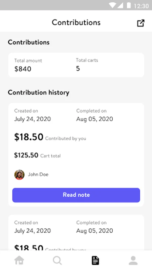 To register as a grocery contributor user of the app, fill in your name and contact information and then log in and review the list of recipients to choose who you would like to help on that day. You can securely contribute payment to buy their entire cart of groceries or just a few items in the cart.