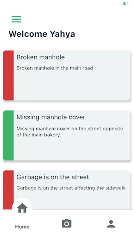 Due to the demanding need to street maintenance in Sahab, this app was developed in order capture the streets, locations, and sidewalks that require maintenance. The main idea is to take a photo of the location with a GPS tag in order to send it to the municipality contact. This is in an attempt to support the municipality in prioritizing the maintenance needed in the community. The long-term goal is to ensure streets in Sahab community are safe for people.