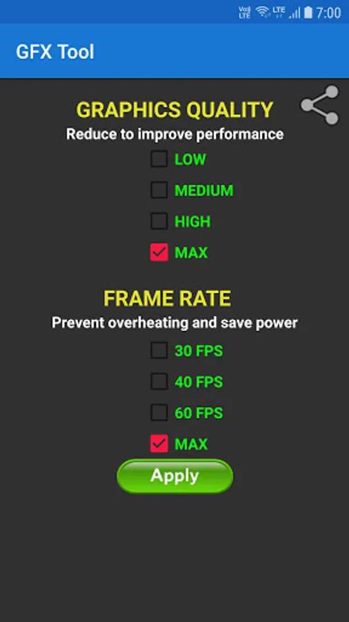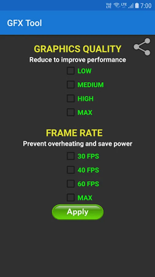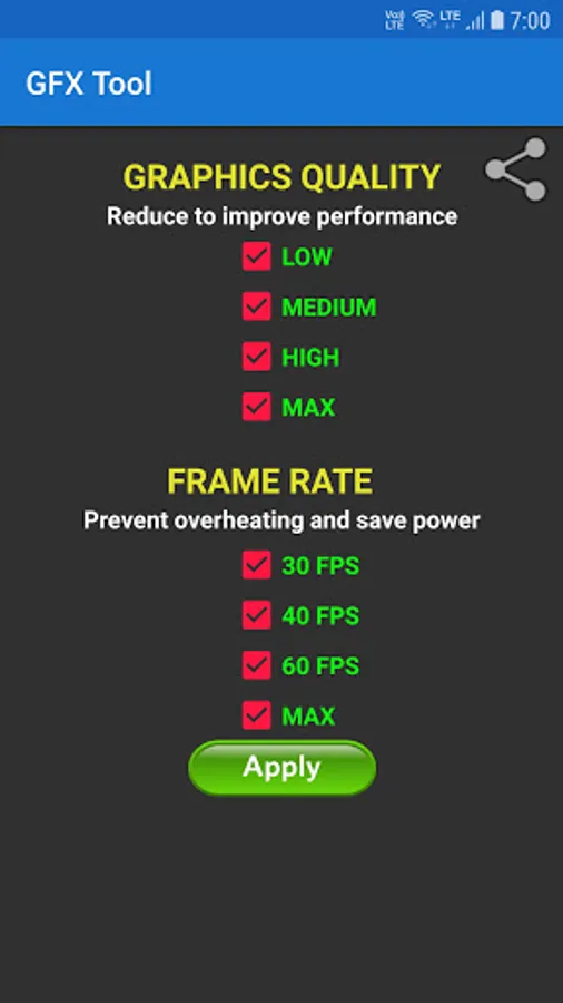 Here we referring to Video resolution of the game that means the number of pixels displayed in width x height. So, this GFX software supports from 950×540 to 2560×1440 pixels resolution, which covers even the HDR quality video games.