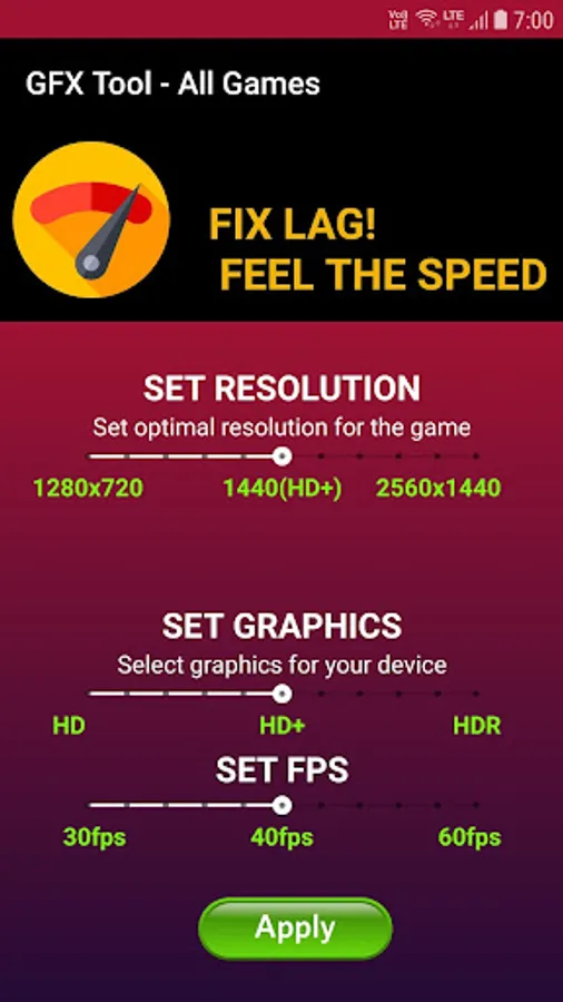Here we referring to Video resolution of the game that means the number of pixels displayed in width x height. So, this GFX software supports from 950×540 to 2560×1440 pixels resolution, which covers even the HDR quality video games.