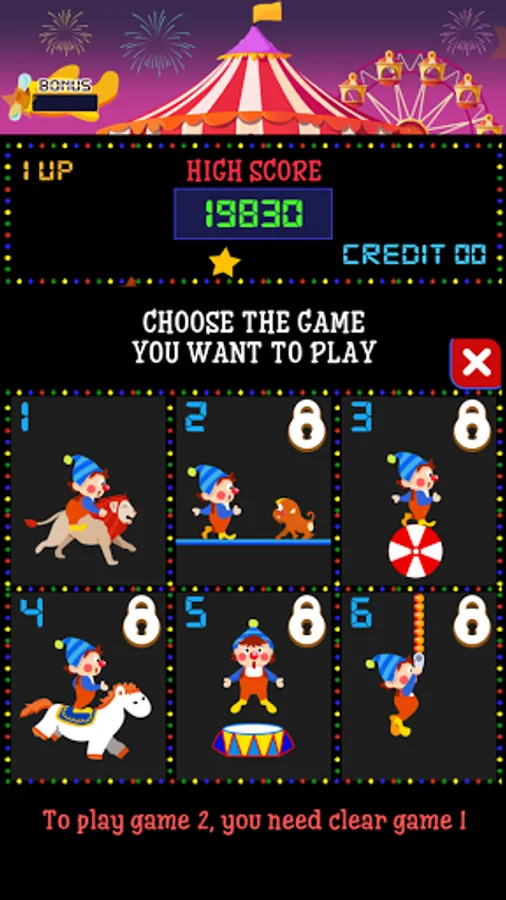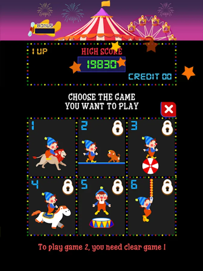 In The Circus : Clown Show you must control player as the Clown, with each of the game's six stages being based on a different circus event.