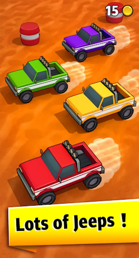 Fasten your seatbelts and enter beastly survival mode in one of the most thrilling and jeep adventures. Participate in a jaw clenching off road jeep driving action and save your jeep from getting crushed by fast moving jeeps and random obstacles scattered on the field. Make sure to act as fast as you can and change direction when needed to evade crashes and become the ultimate survivor in the jeep frenzy arena. Try the game now!