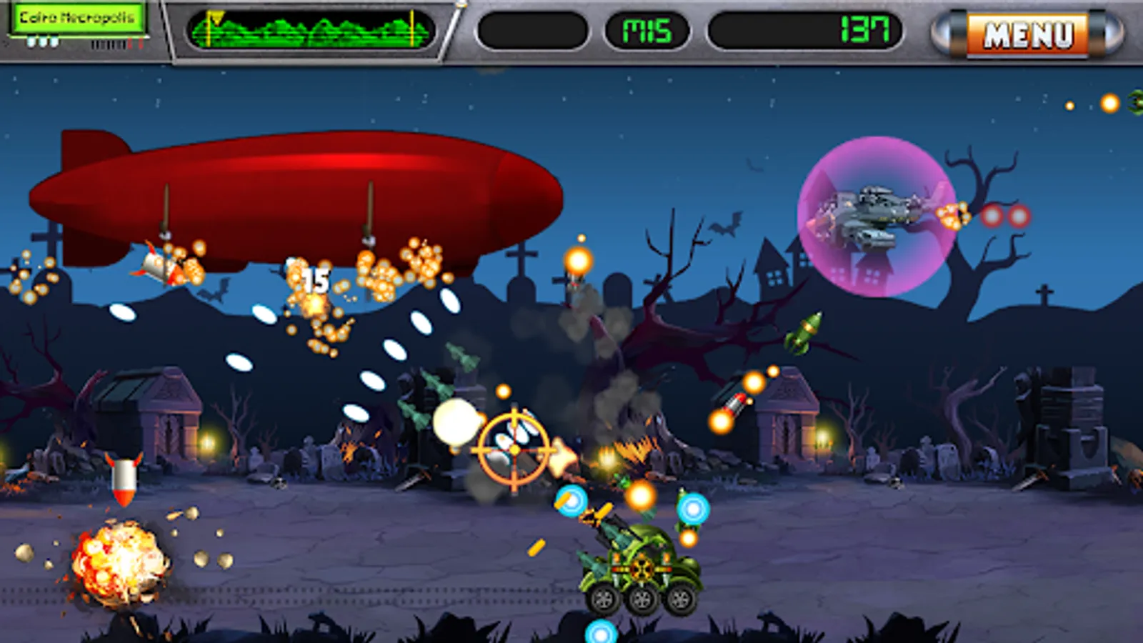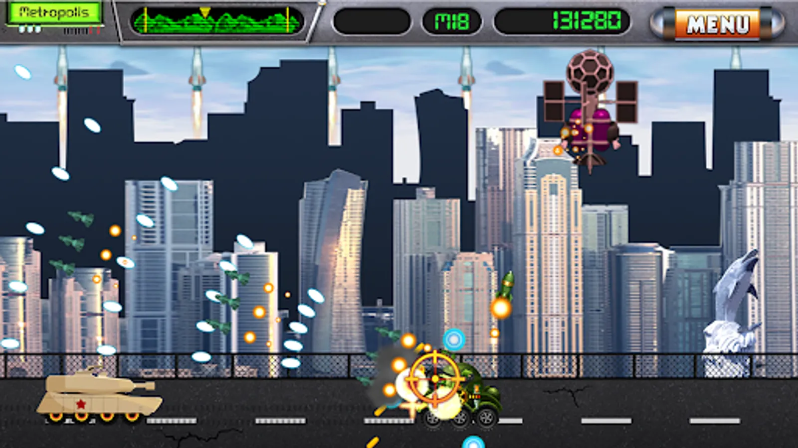 It is up to you to save the world from the Secret Force invasion. The Tank can only move left and right, since it's an side-scrolling game.