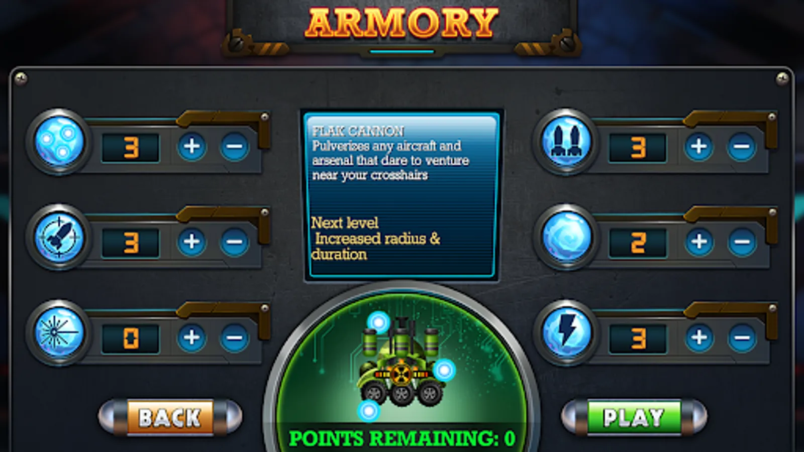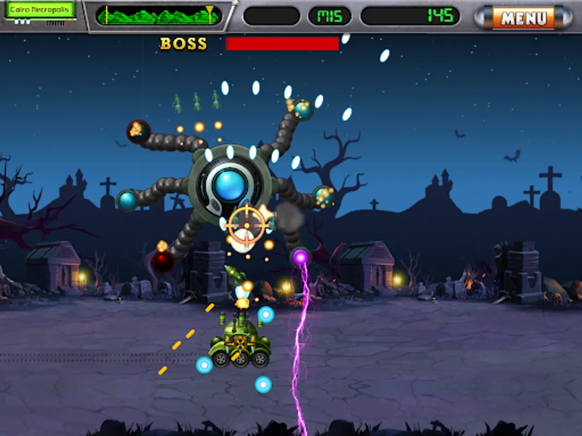 After defeating a boss, you are going to visit the armory, which you can upgrade your tank with various weapons and power-ups. After going through nine bosses, you'll have to go all the way back to the start and destroy the same nine bosses (upgraded versions, stronger, harder), until the final boss.