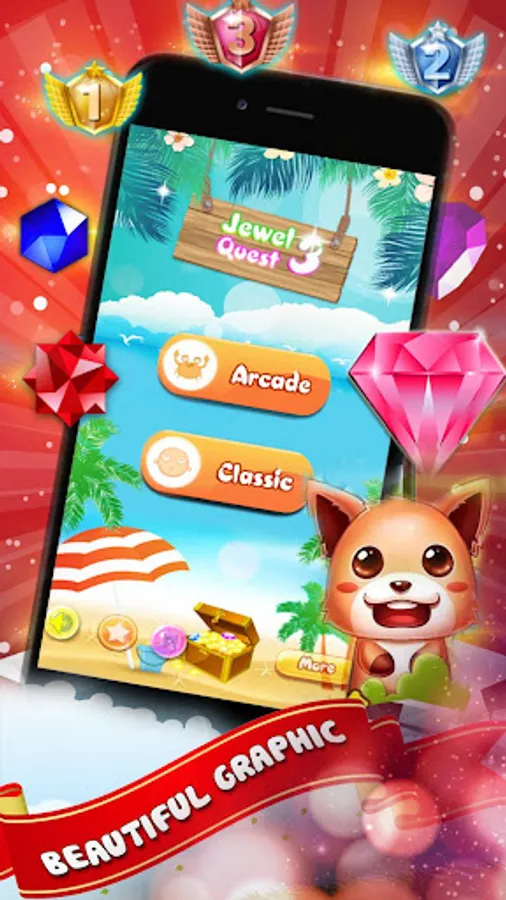 It's simple and fun to play this Jewel Quest with 2 main game modes: Arcade , Classico .Create electrifying special gems like Flame , Star gems, Hypercubes and Supernova.