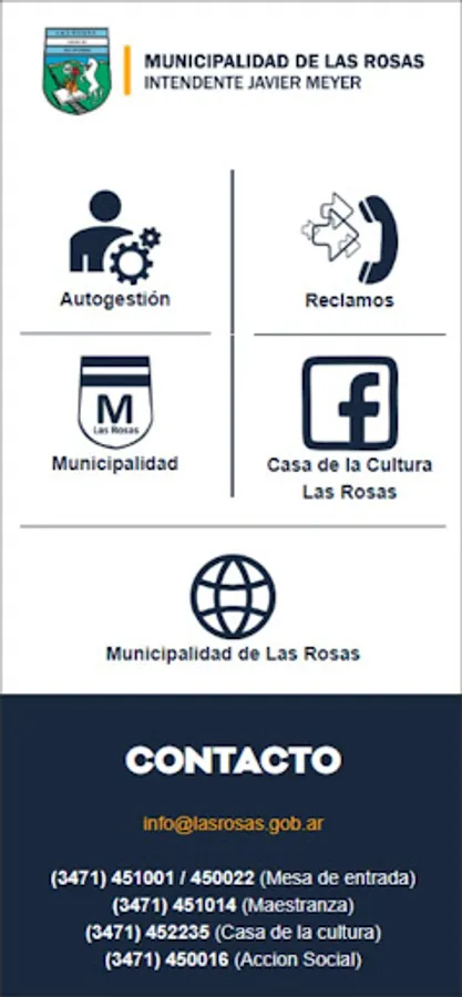Official application of the Municipality of Las Rosas where you can access the latest news, useful telephone numbers and the self-management and claims attention modules.