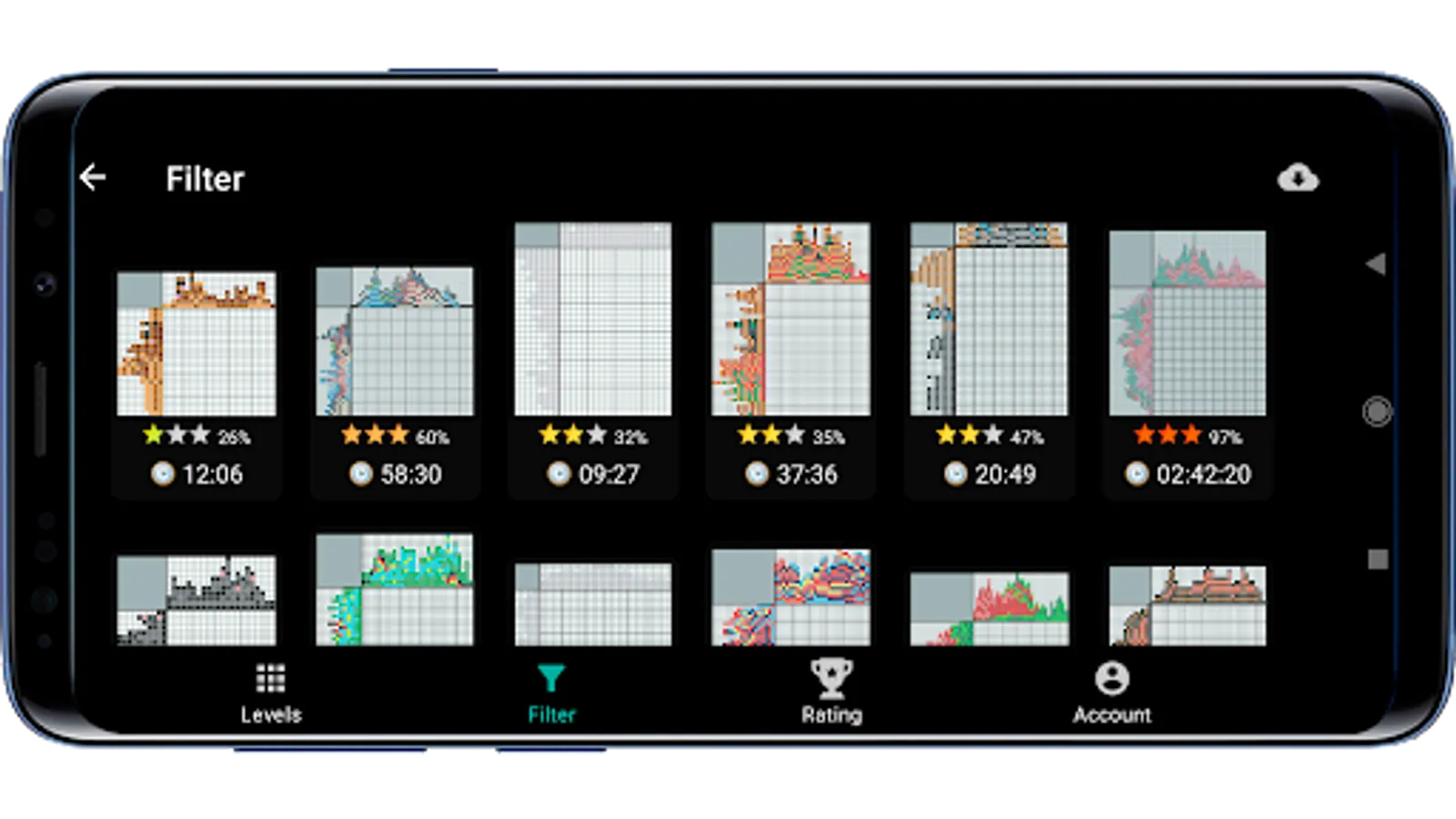 The application has selected several hundred black-and-white and color nonograms that are optimally suited for solving on smartphones and tablets. In addition, several thousand nonograms of various sizes are available online through the built-in search. New nonograms are added daily.