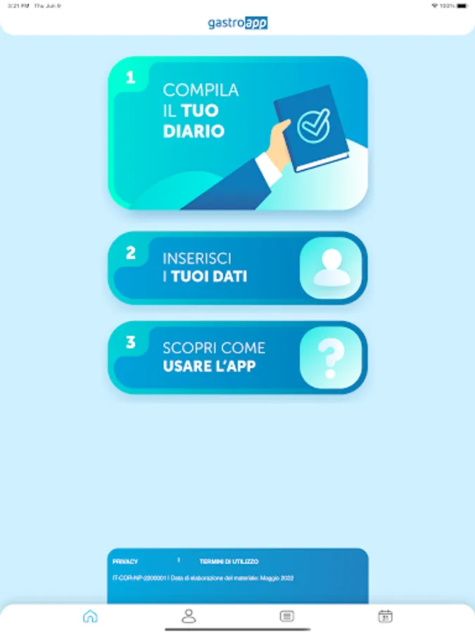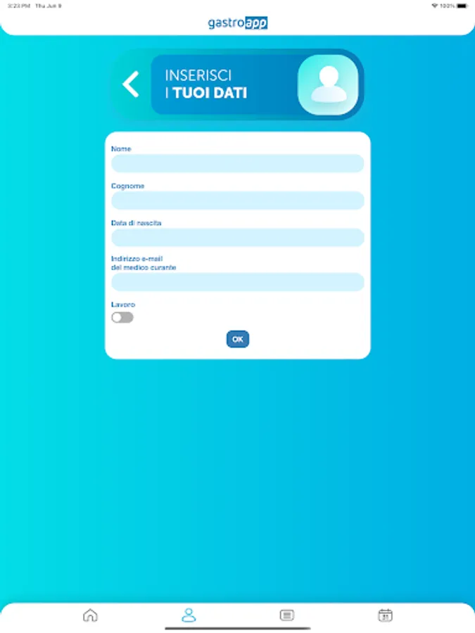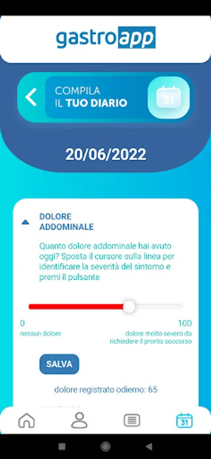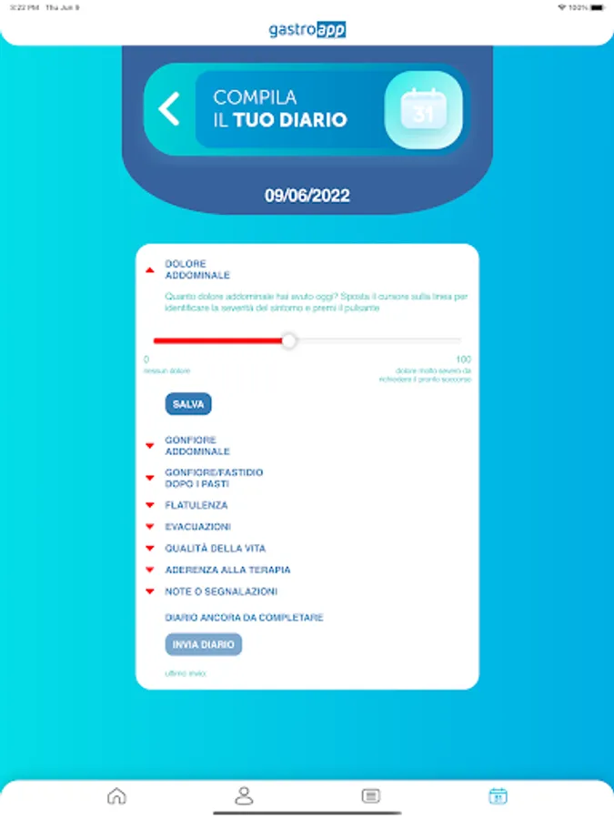 Gastroapp is an app aimed at patients with Irritable Bowel Syndrome. Through the APP, patients will be able to keep their clinical diary updated daily, and periodically send it to their doctor for his evaluation. The entries in the diary have been developed according to the indications of the leading experts in the sector.