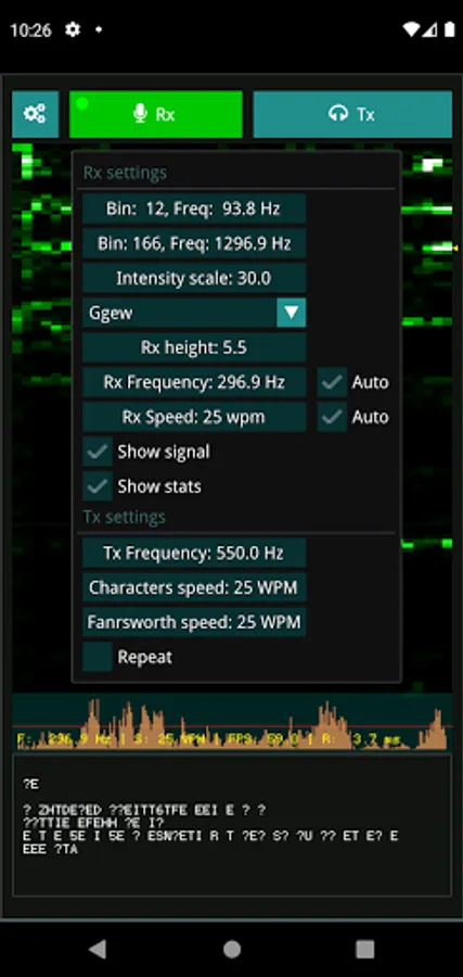 With this application you can easily decode Morse code audio back into text using your phone or tablet. The application automatically detects the frequency and speed of the input signal and displays the decoded text in real-time.