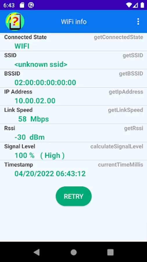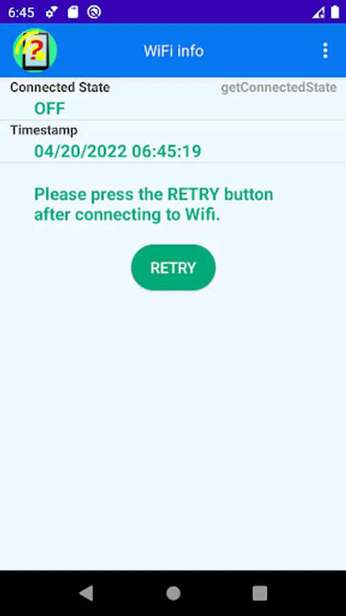 After reconnecting to WiFi, press the Retry button to reacquire and display the above information.