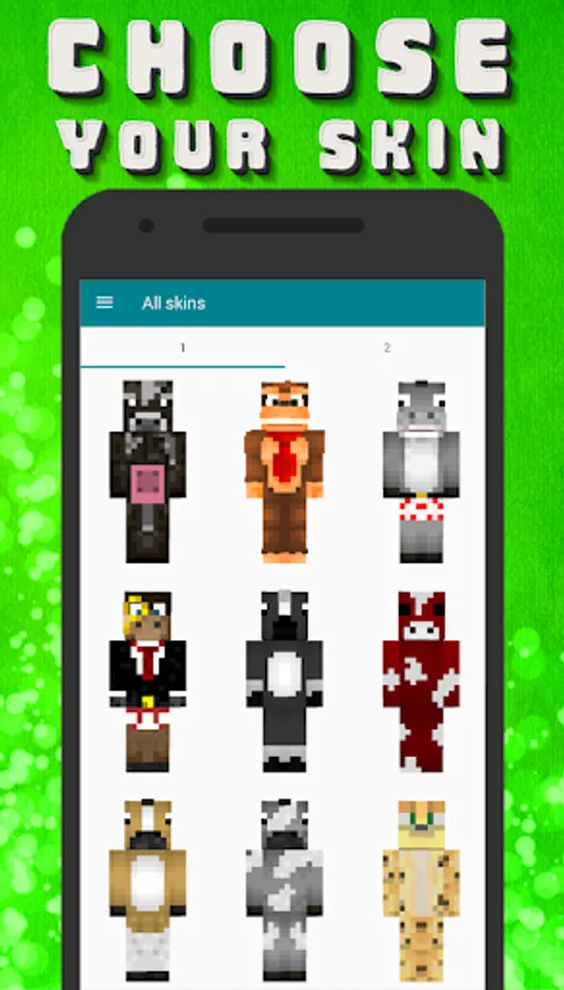 Golem and zombie skins will help you to become scary, as well as the creeper skins.