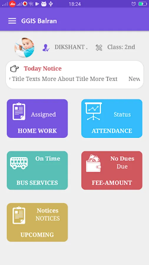 An App for parents for Keep track of Their Children.And parents can check Homework and other information of their child.Can Check Attendance,Updated News of School,Upcoming Events,Upcoming Exams Date.Also Can Check Van Information.