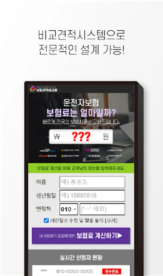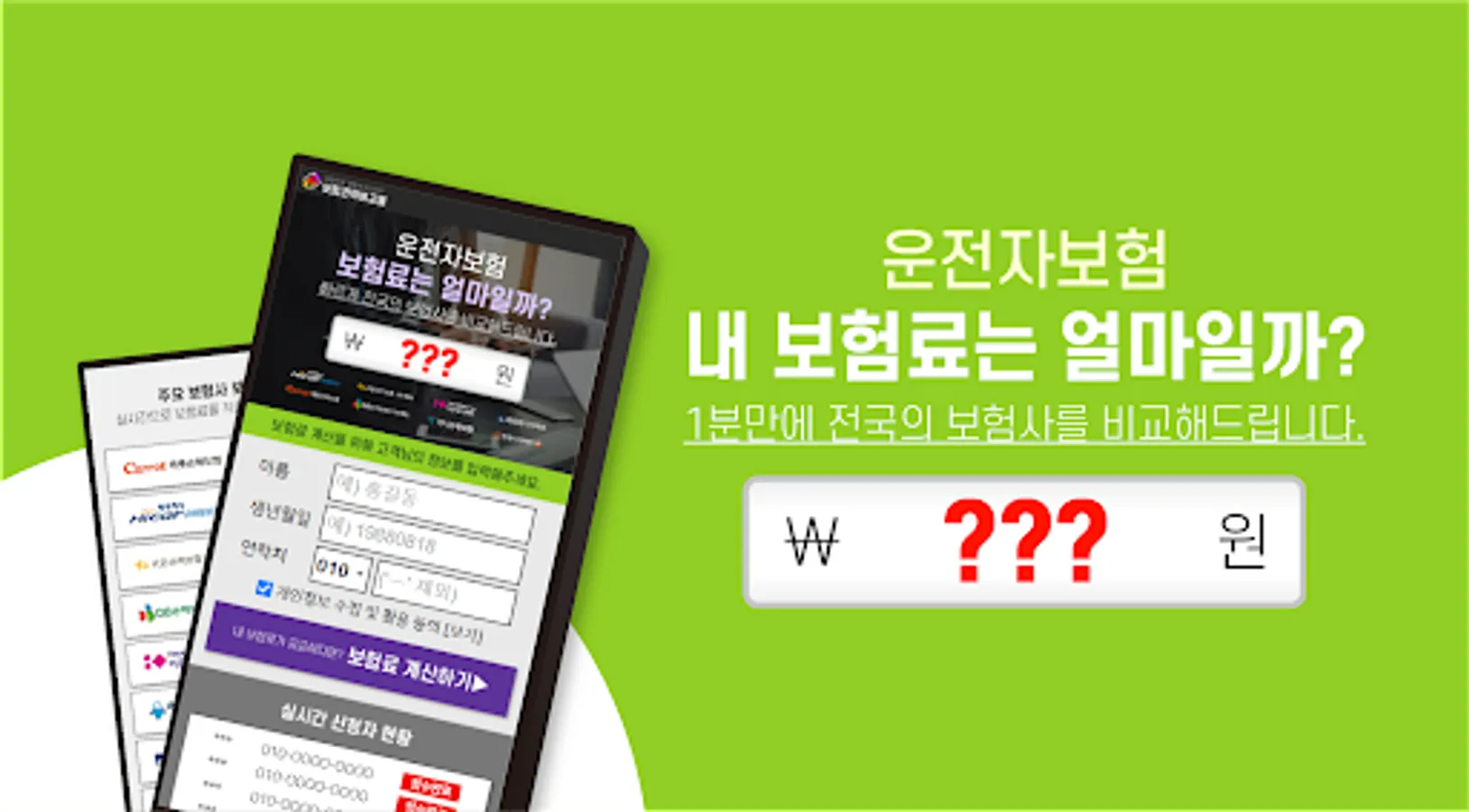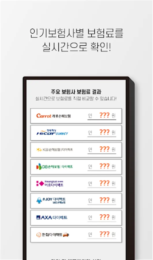 Through the app, you can compare driver insurance premiums by major insurance companies in Korea in real time. You can calculate your driver's insurance premium in real time by simply entering simple information without unnecessary authentication procedures, and you can compare insurance products by insurance company.