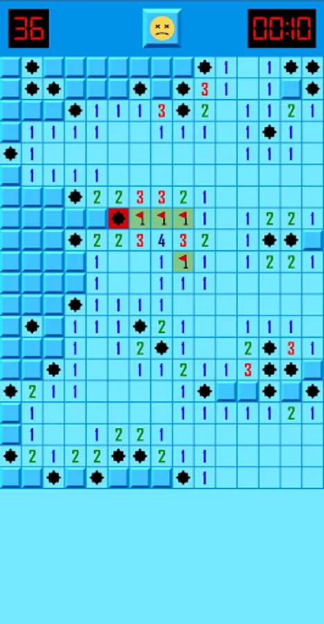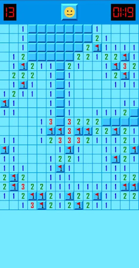 Keeping a box pressed we can put and remove flags to block the boxes where we think there is a mine.