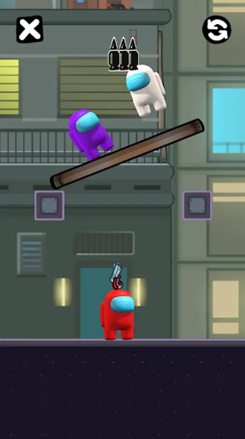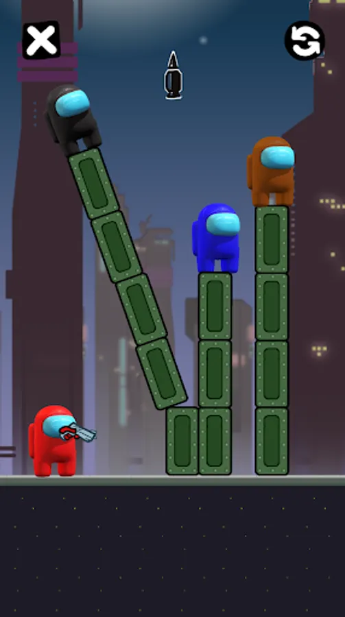 One shot crewmate is a challenging puzzle gameplay to activate your brain, where you can exercise your great accuracy by phenomenally shooting your enemies on your way to become a hero, a spy, and a legend!