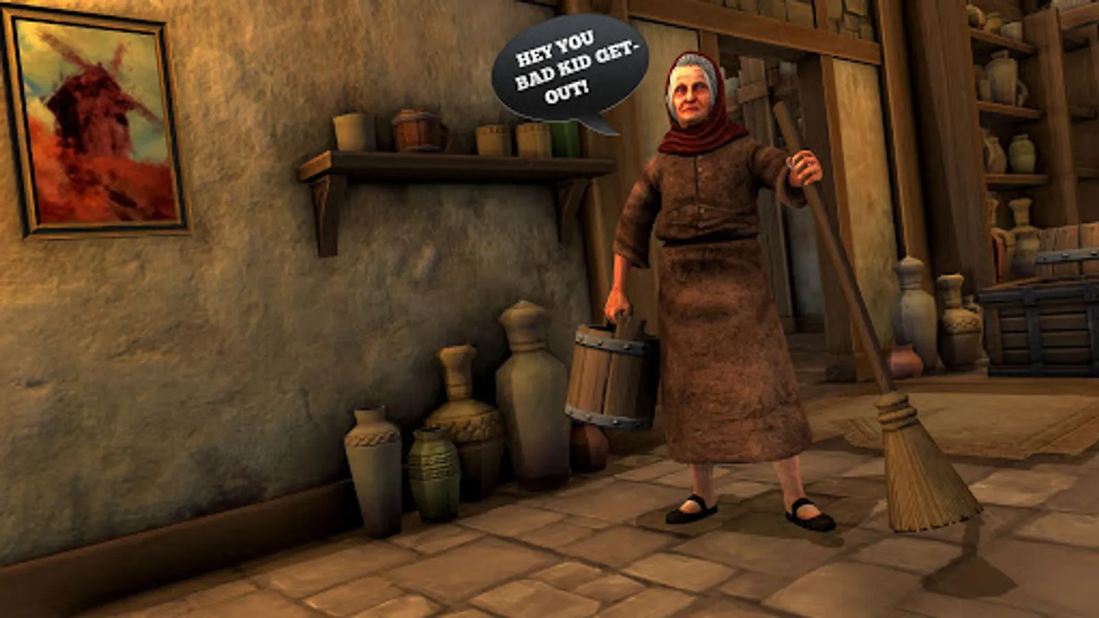 This is the story of 10 years ago when your parents moved to a new neighborhood and settled next to a huge house. After some time, you learned that your new neighbor is a scary terrible granny! You should say hello to mystery and survival in a school garded by a scary evil granny that can hear any noise (be careful!). Evil Granny seems to be a mix between a creepy granny and...a ghost, a victim of a zombie plague or any other dead soul. Very often you noticed that she behaves strangely. She often said hello, watched you and laughed. You decided not to tell your parents about it and find out her terrible secrets alone. One fine day, you decided to enter this huge house and find out what secret your new evil neighbor is hiding. As soon as she saw you, she became very angry and began to run after you.