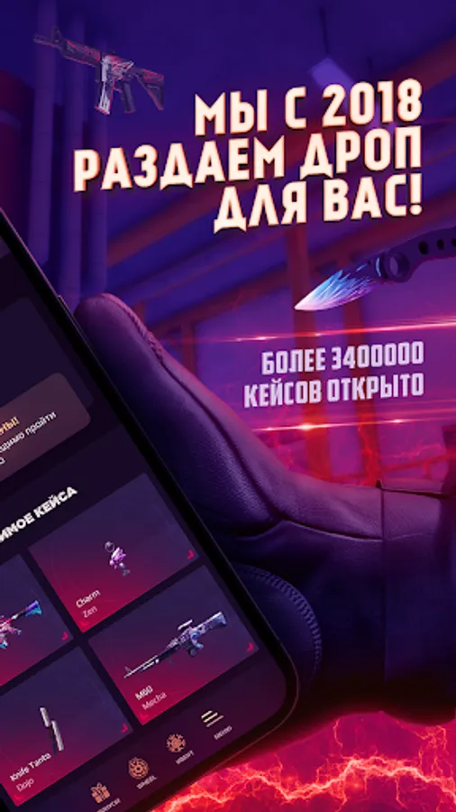 Complete quizzes, collect promotional codes, open cases and get Standoff 2 skins.