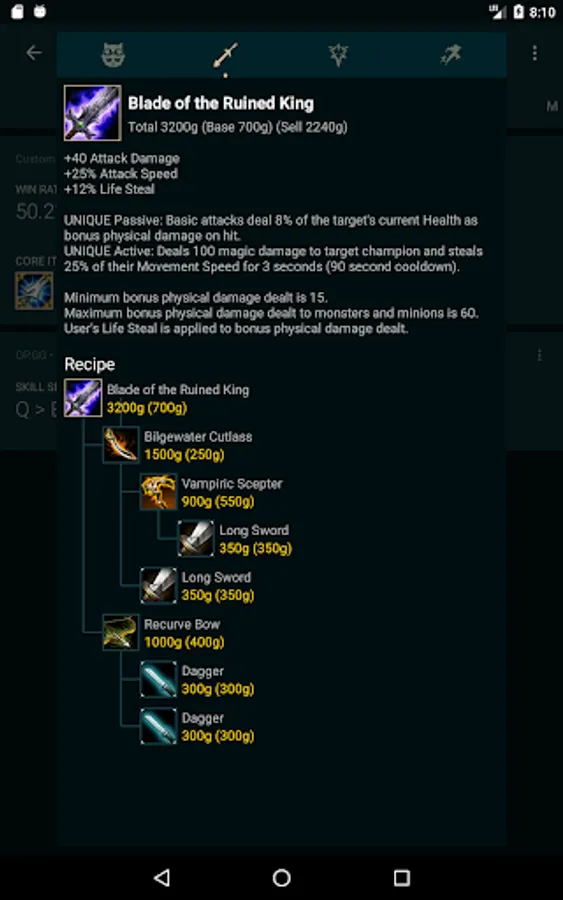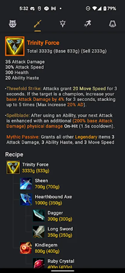 Quickly get the best builds for any champion. See builds from several sources so you can always find a build you like. A recommended build is shown for each champion for your convenience.