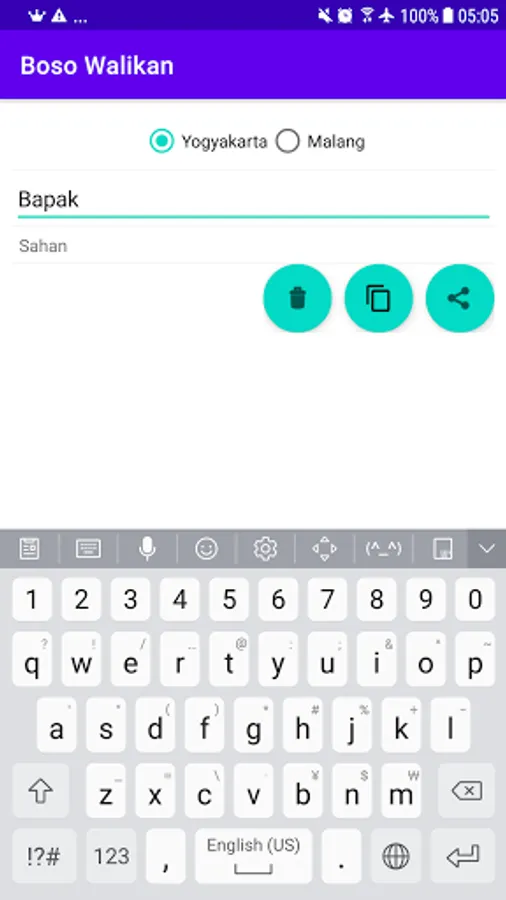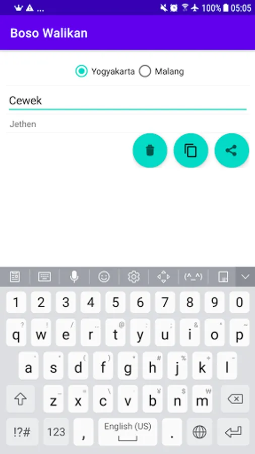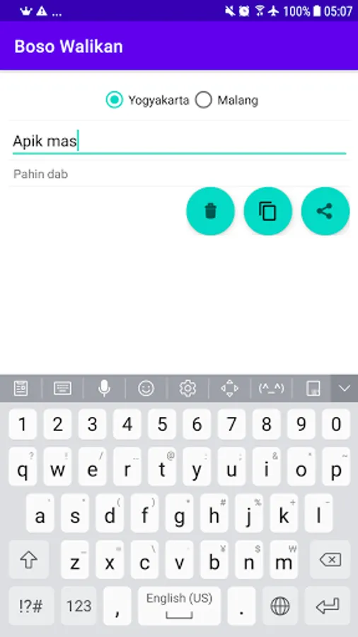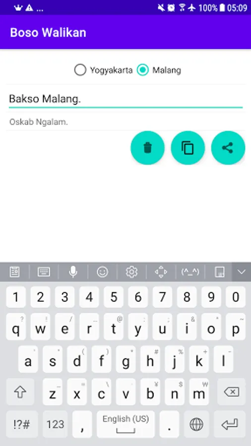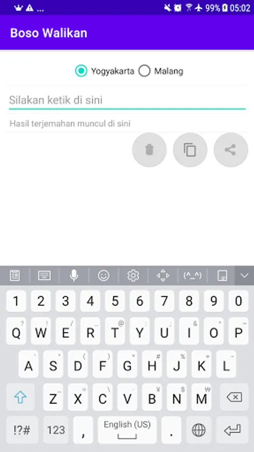 This application is used to convert the writing into the Jowo Walik or Malang Walik versions. You can type the text that you want to change, you can also receive text from other applications by tapping share text from other applications.