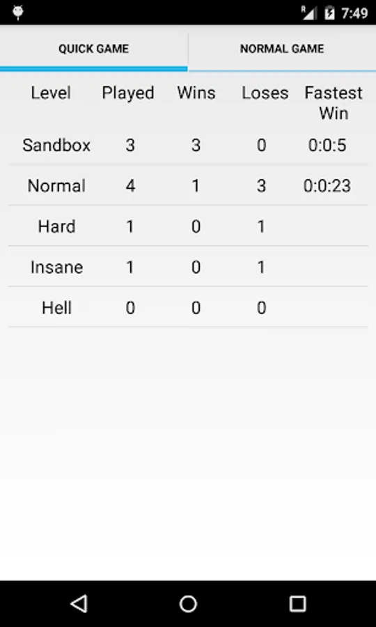Stats - View your game stats like fastest win, total games played, wins and loses