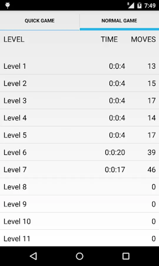 Highscores - Check out your fastest time for each level and the minimum number of moves you took