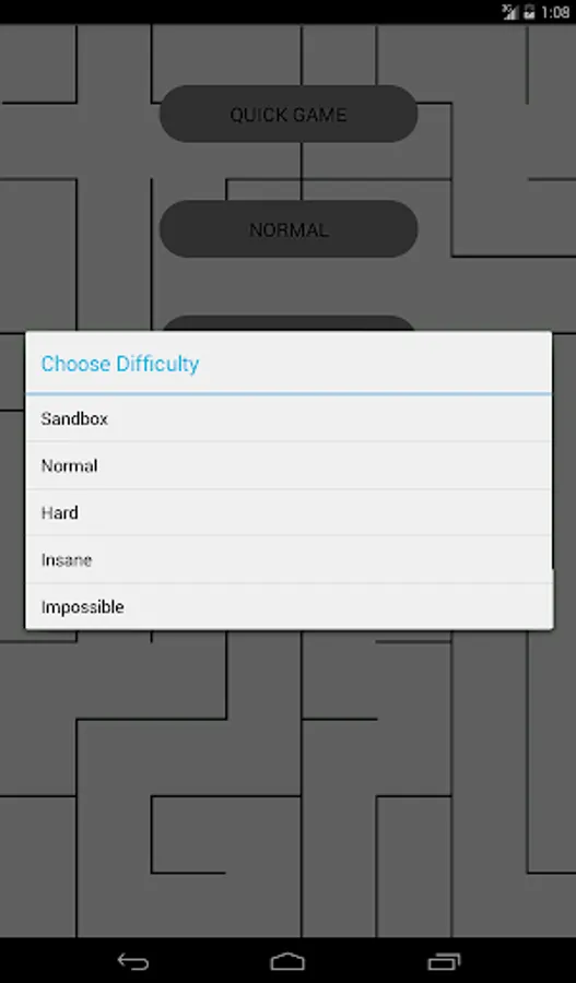 Quick Game - Solve a random maze of chosen difficulty