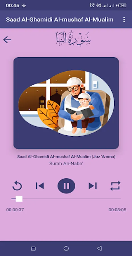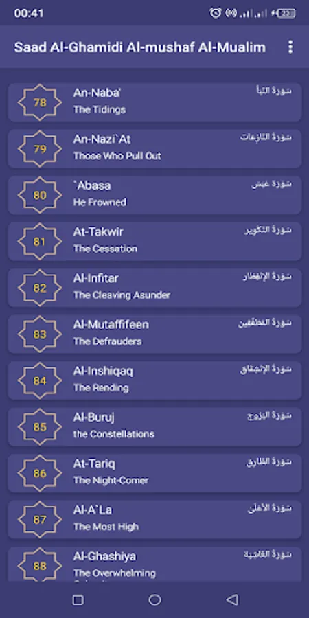 *Features of Saad Al-Ghamidi Al-mushaf Al-Mualim (Juz 'Amma) App: