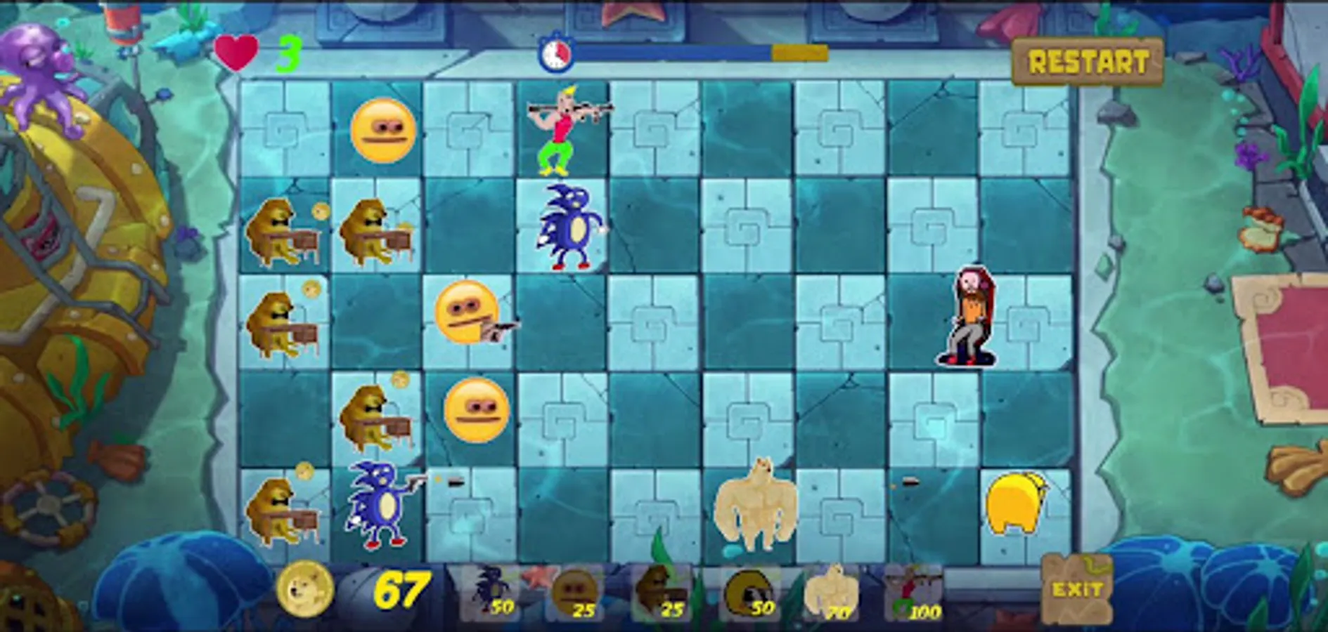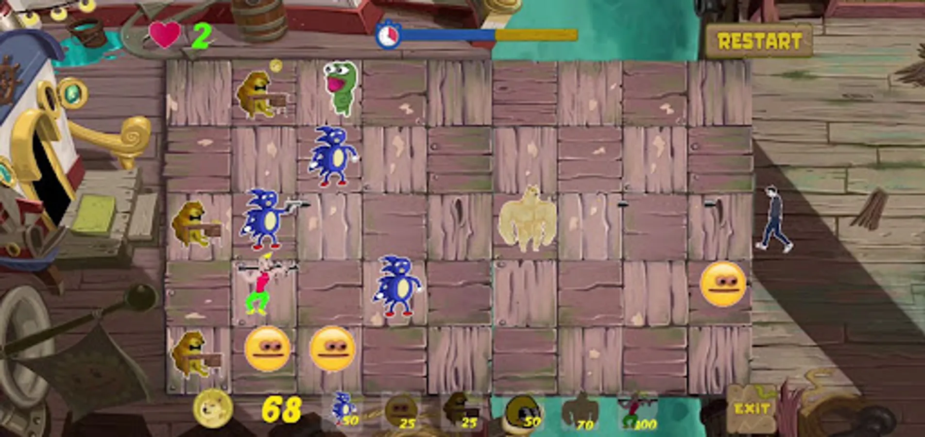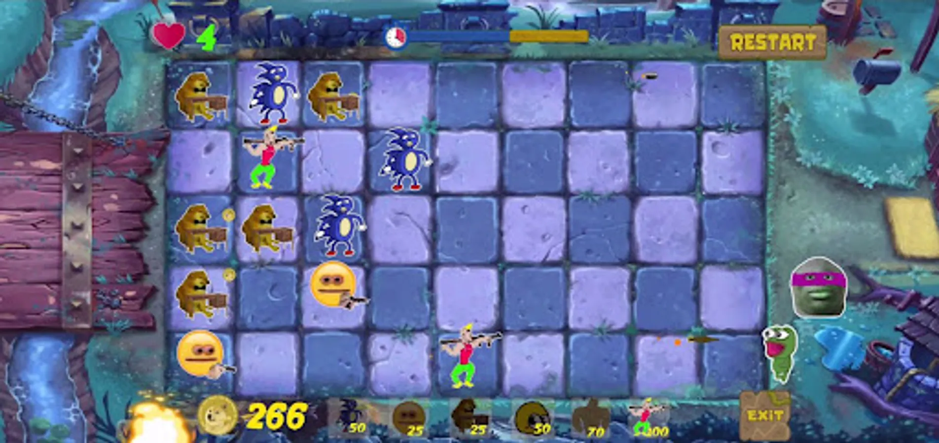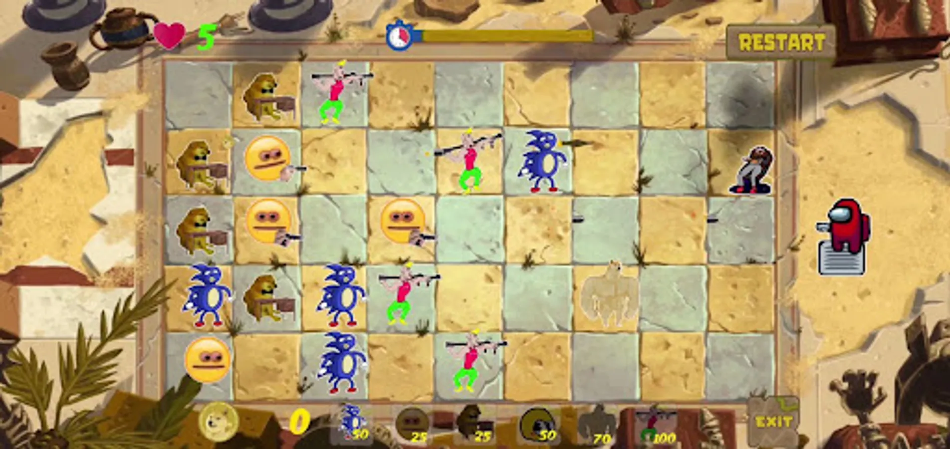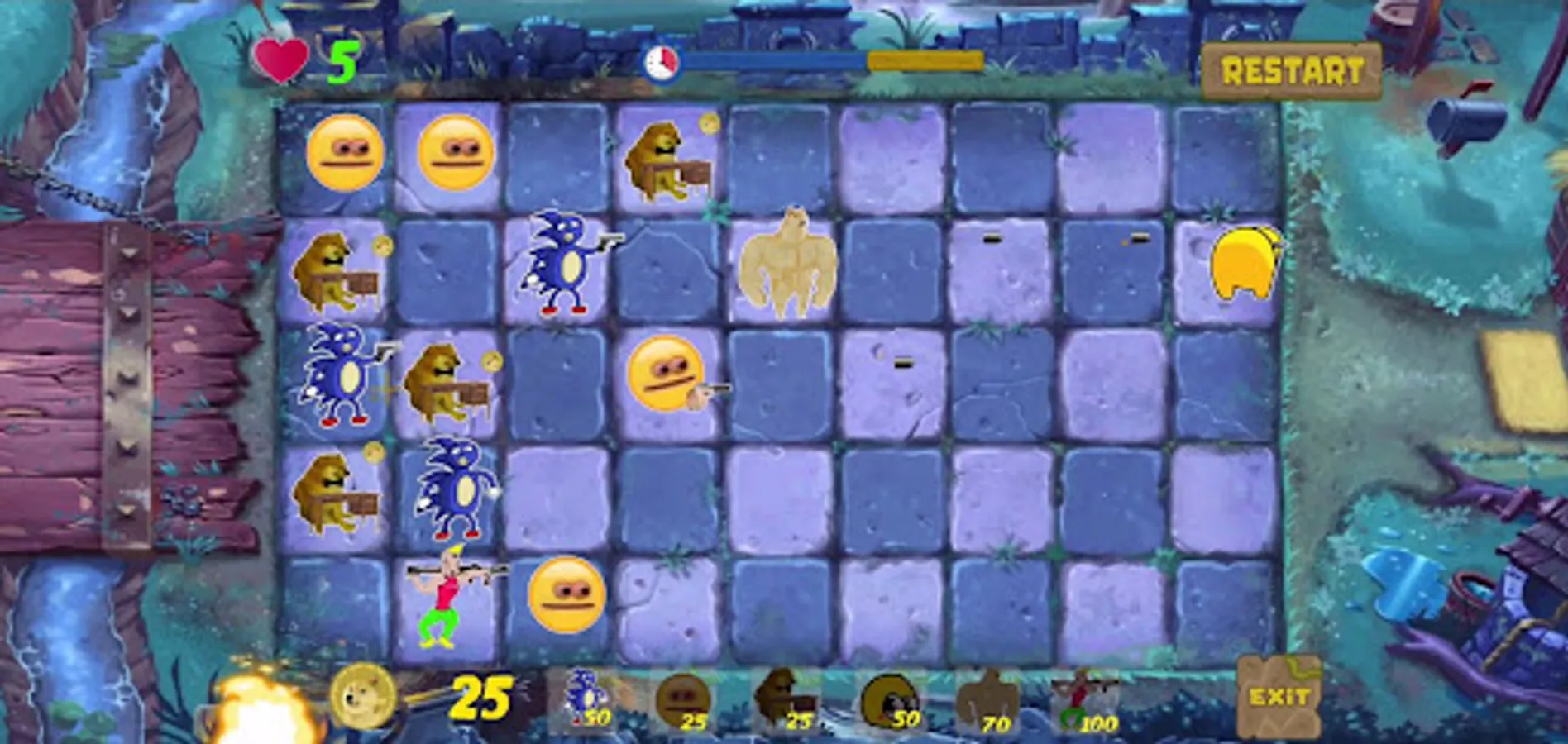 Try to Protect your Base with Sanic and his friends chad, buff doge, cheems and cursed emojis!! and kill all Dead Memes Uganda, virgin, angry emoji, beanos, pewds and more