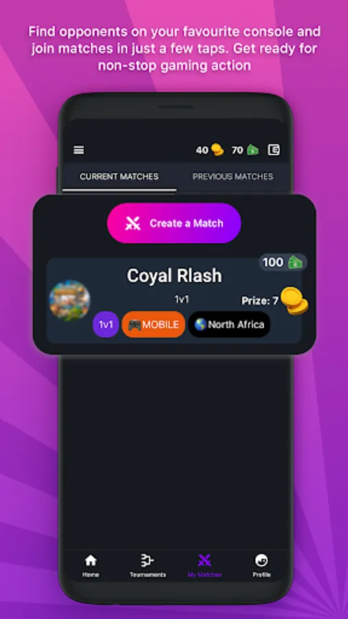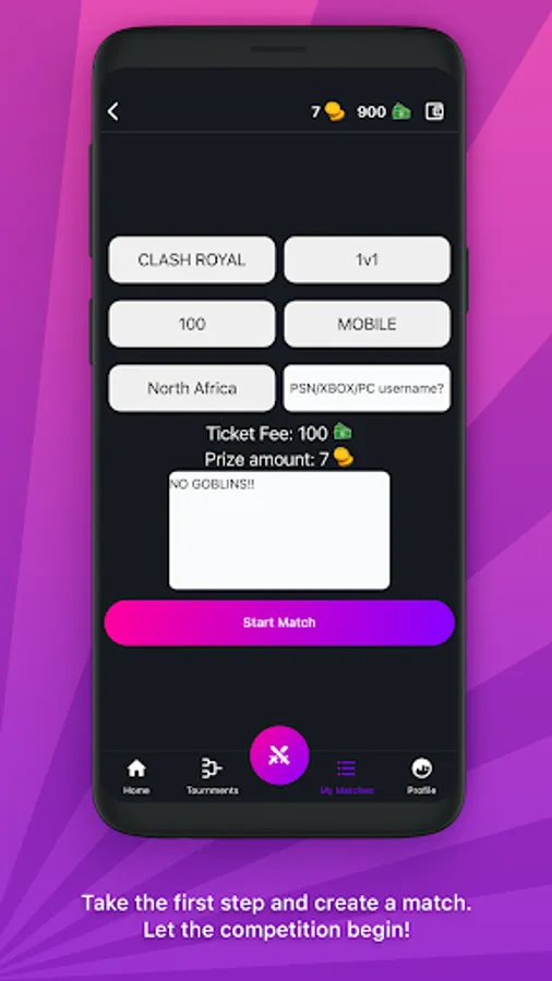 Step 2: 🔍 Use your tickets to create or join a 1v1 match or join tournaments on GameBattles for popular games and challenge other players.