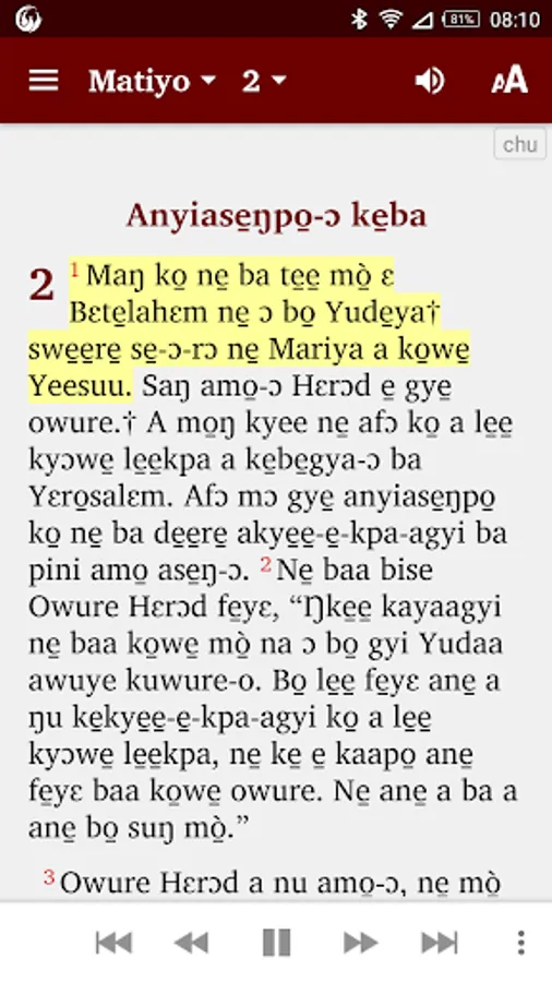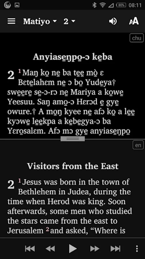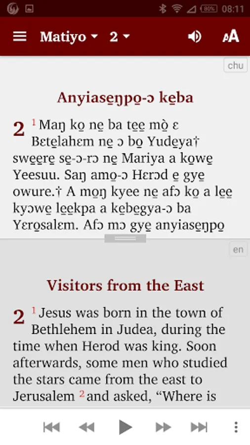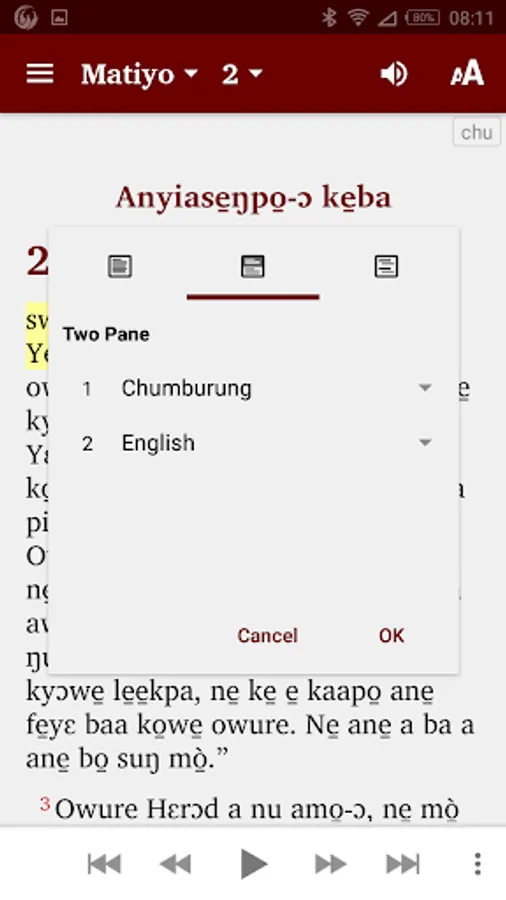 - Verse by verse Pane to see one Chumburung verse followed by its English equivalent