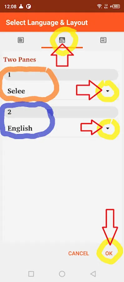 - "two panes" to display the Selee at the top and the English version at the bottom