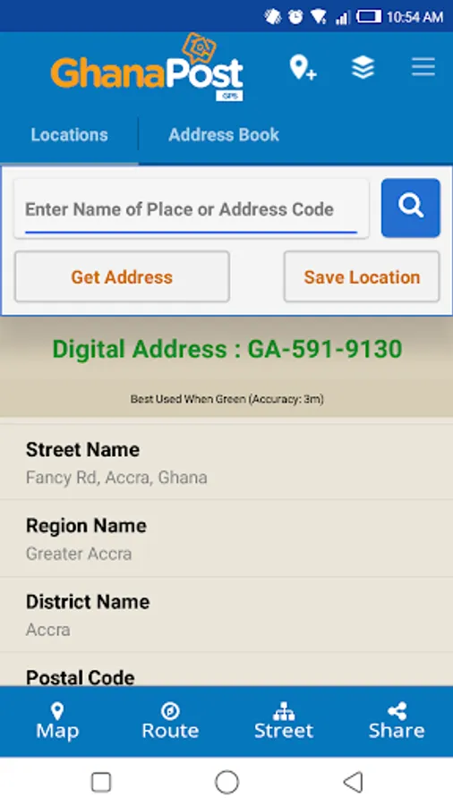 The digital address is a composite of the postcode (region, district & area code) plus a unique address. GhanaPostGPS translates your GPS location to a user friendly digital address. With GhanaPostGPS,