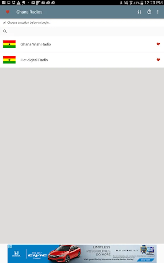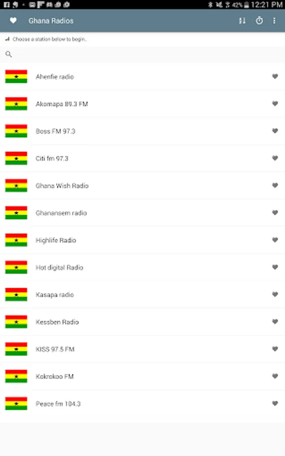 - Ability to sort your Ghana Radio stations in alphabetical order or quickly search from the list of Ghana radios.