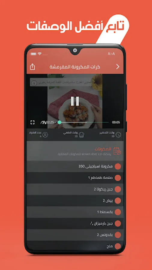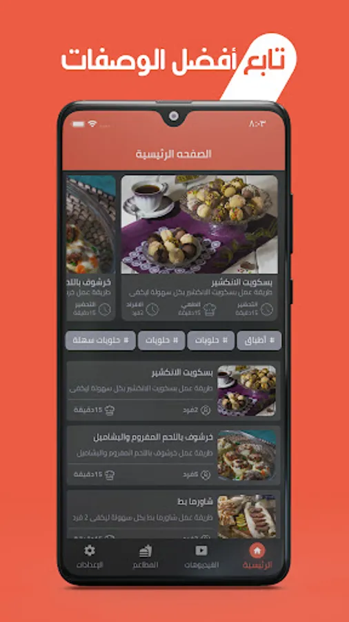 التطبيق يقوم بعرض وصفات الطعام بشكل جميل وسهل
