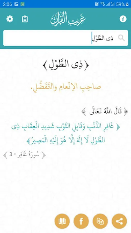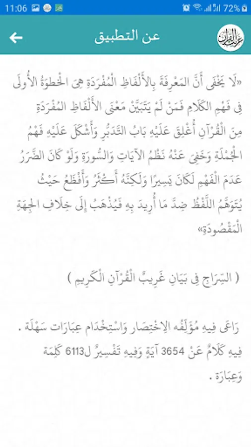 An application that shows you strange words from the vocabulary of the Book of God with a daily alert for a number of words and you can search in words that you do not know their interpretation and their meaning