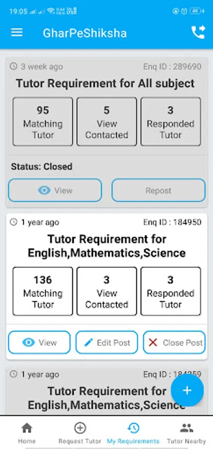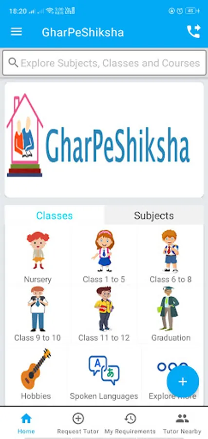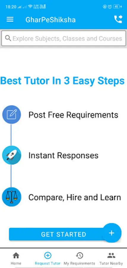 GharPeShiksha student application for students to easily request for new tutor and help them excel in studies from the comfort of their home.