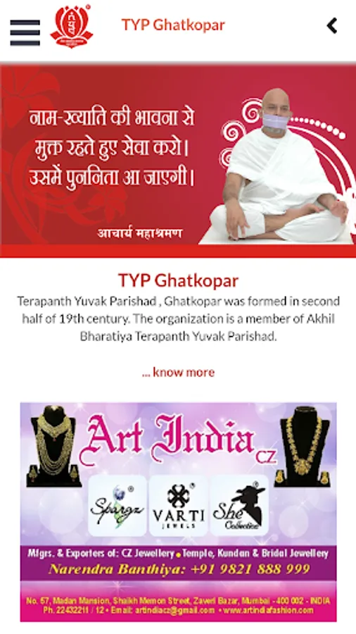 The organization has a team of over 300+ members. The organisation is presently headed by Lokesh ji Dangi as its President for the term 2017-2018. The organisation helps in strengthening the moral values of youth by creating opportunities to serve people, state and nation through its various social and cultural events inculcating the value of Jain Terapanth. Below are some great advantages and features of the app.
