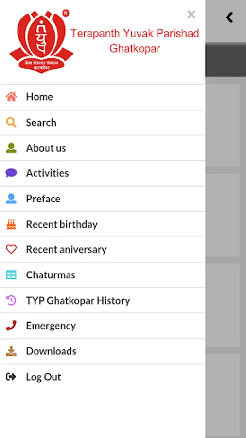Terapanth Yuvak Parishad , Ghatkopar was formed in second half of 19th century. The organization is a member of Akhil Bharatiya Terapanth Yuvak Parishad . The three basic objectives of the organization are SEVA (to serve) , SANSKAR (to inculcate moral values) and SANGATHAN ( to strengthen and organize the Terapanth Youth).