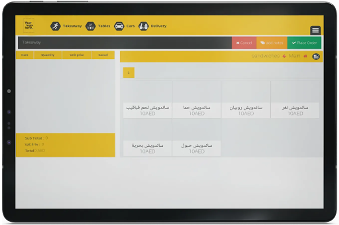 Take all your restaurant orders By the app.