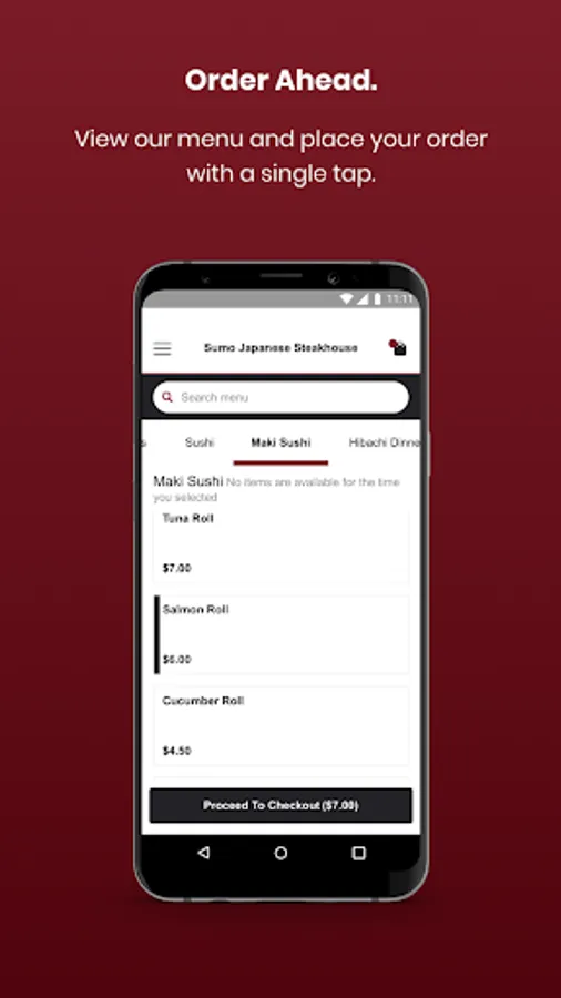 Your favorite Hibachi & Sushi meal is just a few taps away. Download the FREE Sumo Japanese Steakhouse app for Android today!