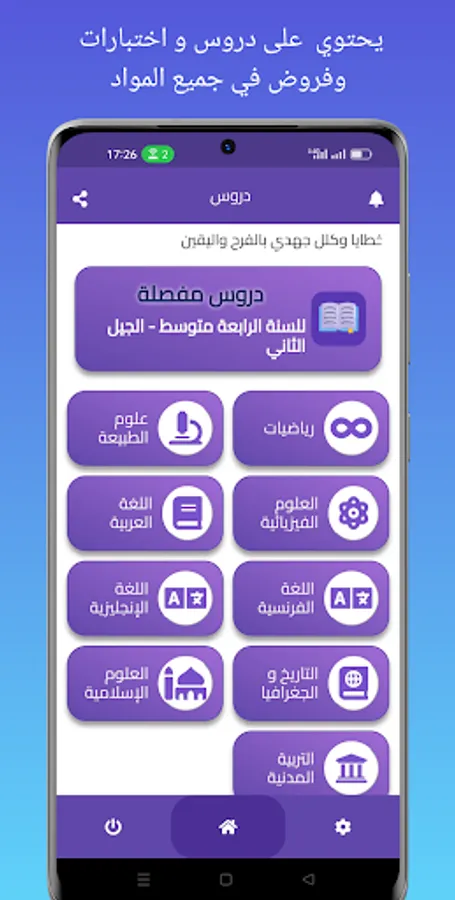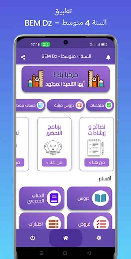 The Year 4 Intermediate - BEM Dz application contains everything you need for excellent preparation for the Intermediate Education Certificate