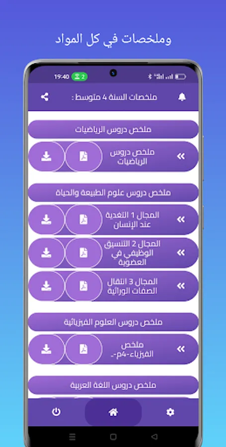 With the Year 4 Intermediate - BEM Dz application, you can browse and download lessons in PDF format