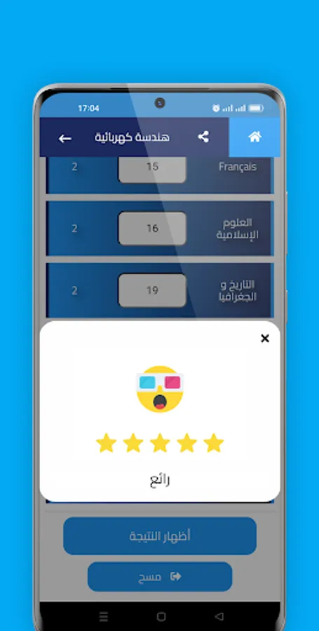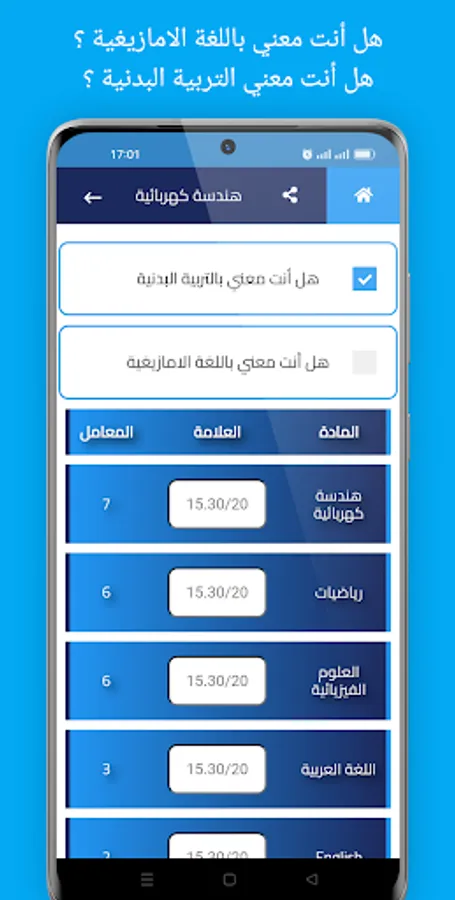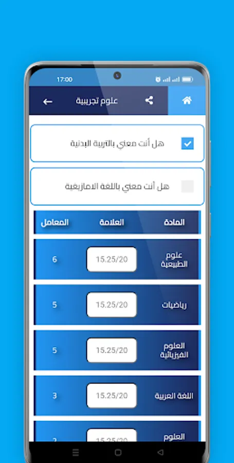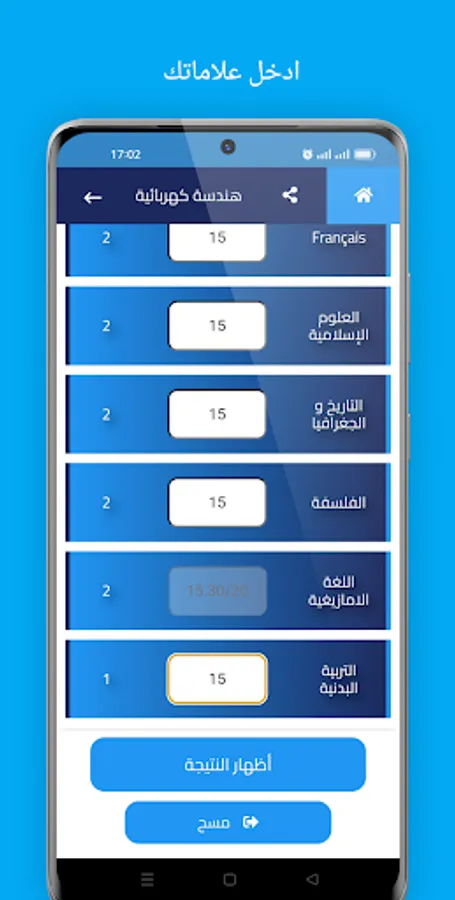 • Calculate your average by filling in the subjects' points fields, as the application will calculate your average.